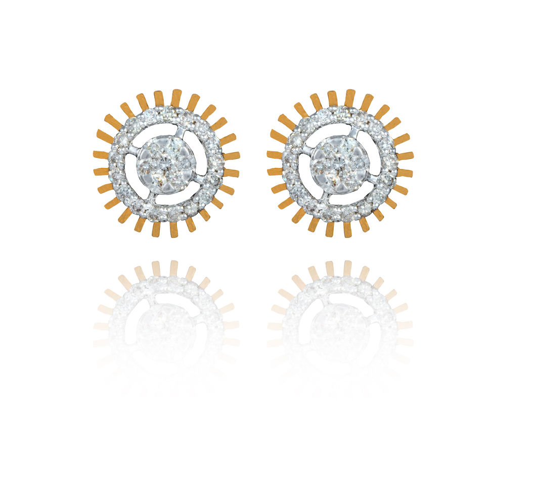 These circular studs feature a luminous core of sparkling stones surrounded by a golden halo of linear rays — a design that captures the warmth of the sun and the dazzle of stardust. Perfect for daytime glow or evening shimmer, Halo blends tradition and modernity in a single glint.